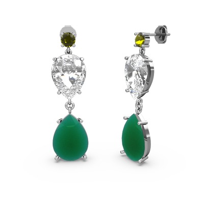 Peridot, kök zümrüt ve beyaz zirkon 8 ayar beyaz altın küpe