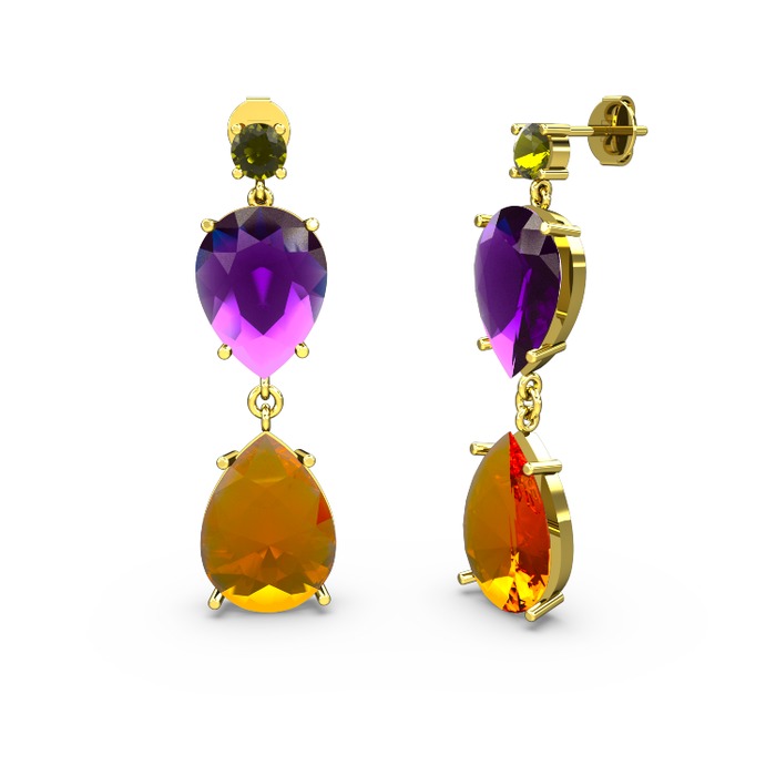 Peridot, sitrin ve ametist 14 ayar altın küpe