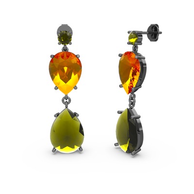 Peridot ve sitrin 925 ayar siyah rodyum kaplama gümüş küpe