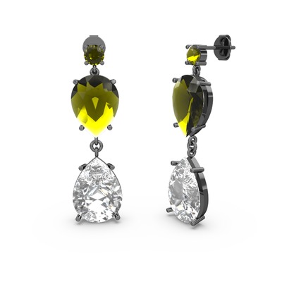 Peridot ve swarovski 925 ayar siyah rodyum kaplama gümüş küpe