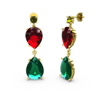 Peridot, yeşil kuvars ve garnet 14 ayar altın küpe
