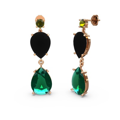 Peridot, yeşil kuvars ve siyah zirkon 18 ayar rose altın küpe
