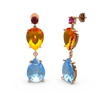 Rodolit garnet, akuamarin ve sitrin 14 ayar rose altın küpe