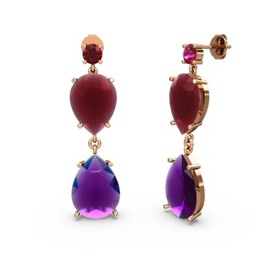 Rodolit garnet, ametist ve kök yakut 8 ayar rose altın küpe