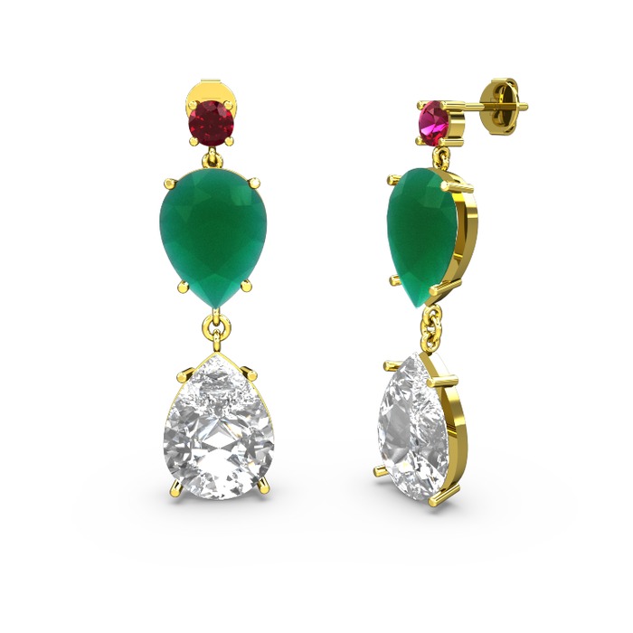 Rodolit garnet, beyaz zirkon ve kök zümrüt 925 ayar altın kaplama gümüş küpe