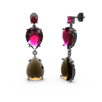 Rodolit garnet ve dumanlı kuvars 925 ayar siyah rodyum kaplama gümüş küpe
