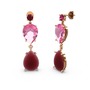 Rodolit garnet, kök yakut ve pembe kuvars 14 ayar rose altın küpe