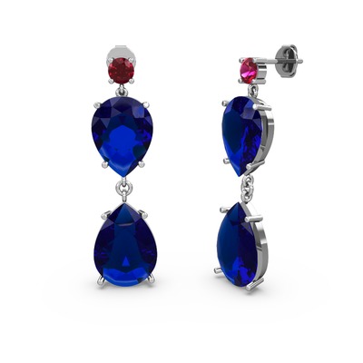 Rodolit garnet ve lab safir 14 ayar beyaz altın küpe