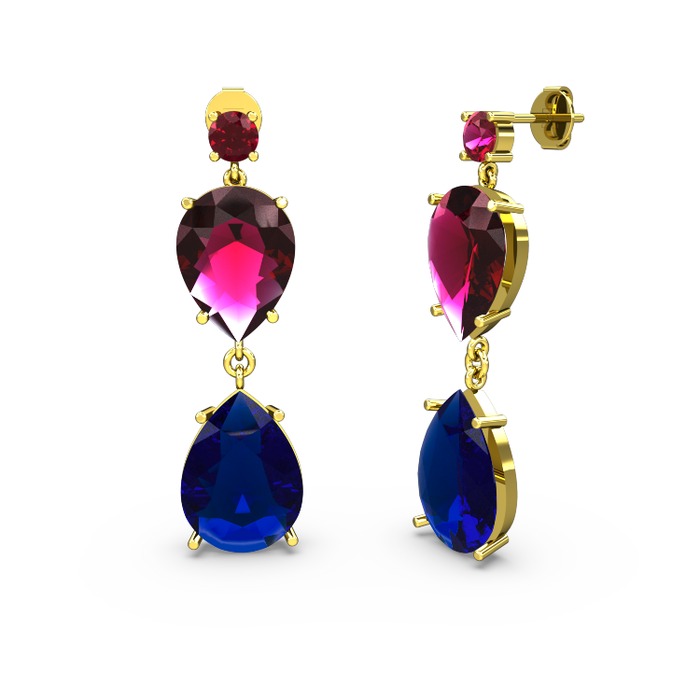 Rodolit garnet ve lab safir 8 ayar altın küpe