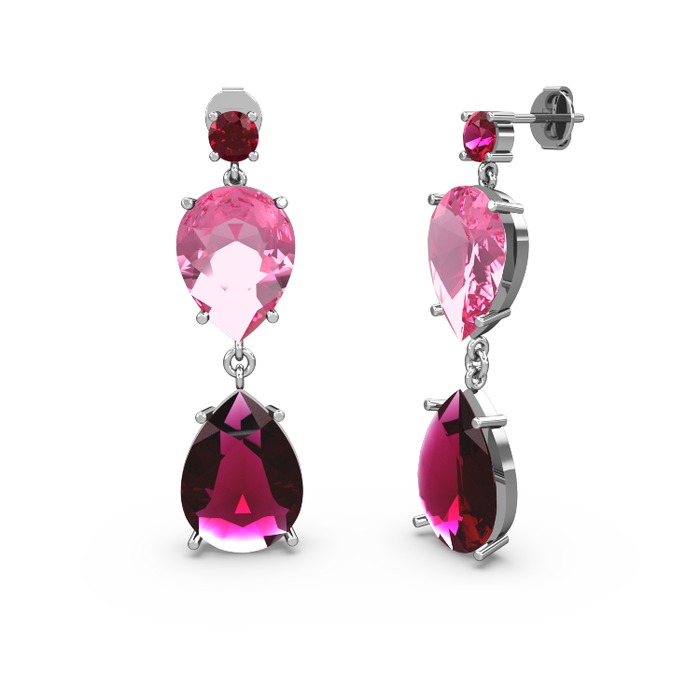 Rodolit garnet ve pembe kuvars 925 ayar gümüş küpe