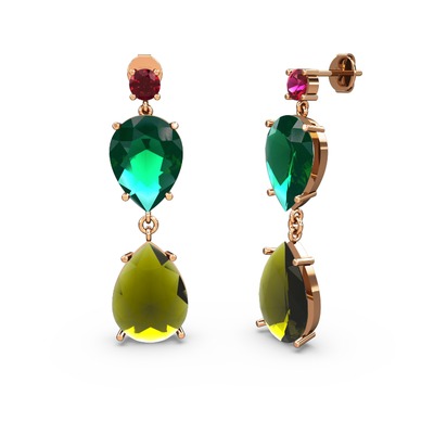 Rodolit garnet, peridot ve yeşil kuvars 18 ayar rose altın küpe