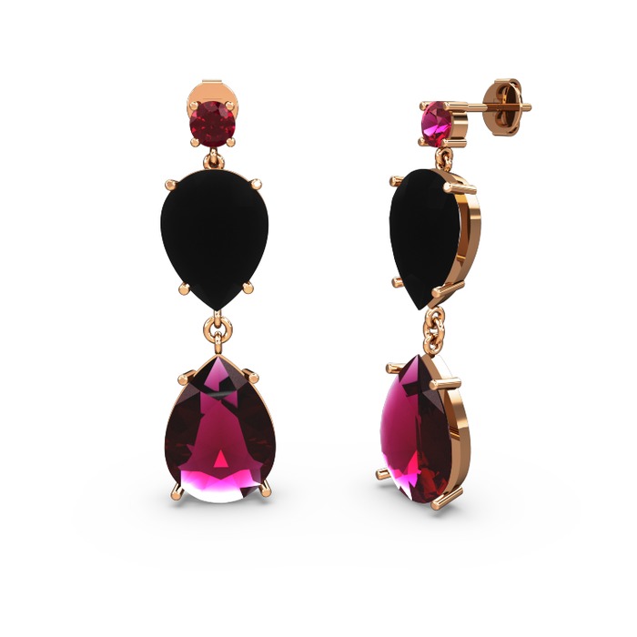 Rodolit garnet ve siyah zirkon 14 ayar rose altın küpe