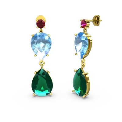 Rodolit garnet, yeşil kuvars ve akuamarin 8 ayar altın küpe
