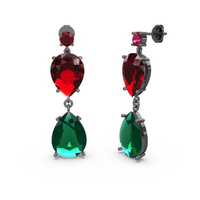 Rodolit garnet, yeşil kuvars ve garnet 925 ayar siyah rodyum kaplama gümüş küpe