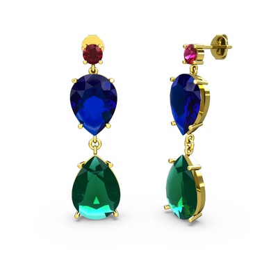 Rodolit garnet, yeşil kuvars ve lab safir 8 ayar altın küpe