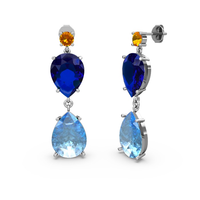 Sitrin, akuamarin ve lab safir 18 ayar beyaz altın küpe