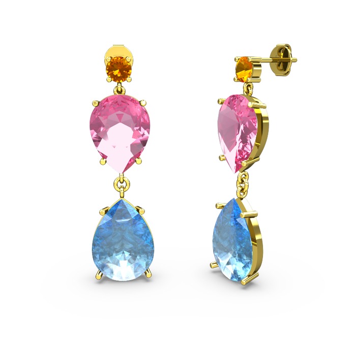 Sitrin, akuamarin ve pembe kuvars 925 ayar altın kaplama gümüş küpe