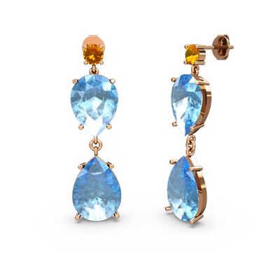 Sitrin ve akuamarin 925 ayar rose altın kaplama gümüş küpe