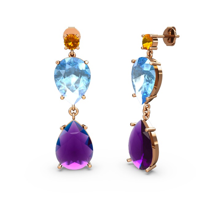 Sitrin, ametist ve akuamarin 8 ayar rose altın küpe