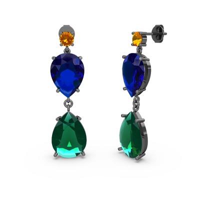Sitrin, yeşil kuvars ve lab safir 925 ayar siyah rodyum kaplama gümüş küpe