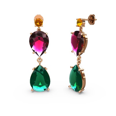 Sitrin, yeşil kuvars ve rodolit garnet 14 ayar rose altın küpe
