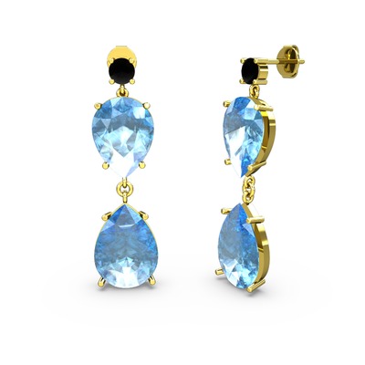 Siyah zirkon ve akuamarin 925 ayar altın kaplama gümüş küpe