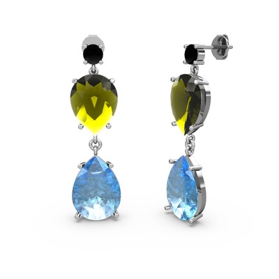 Siyah zirkon, akuamarin ve peridot 8 ayar beyaz altın küpe