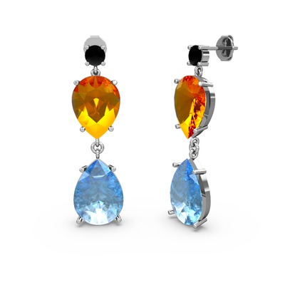 Siyah zirkon, akuamarin ve sitrin 8 ayar beyaz altın küpe