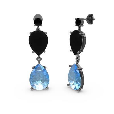 Siyah zirkon ve akuamarin 925 ayar siyah rodyum kaplama gümüş küpe
