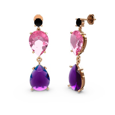 Siyah zirkon, ametist ve pembe kuvars 8 ayar rose altın küpe
