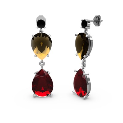 Siyah zirkon, garnet ve dumanlı kuvars 925 ayar gümüş küpe