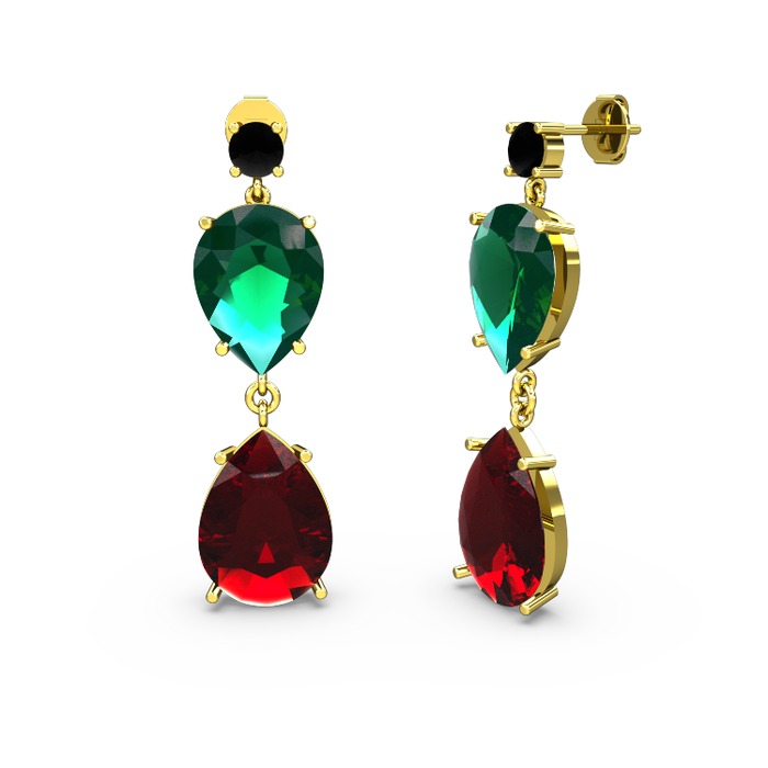 Siyah zirkon, garnet ve yeşil kuvars 14 ayar altın küpe