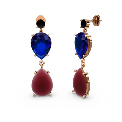 Siyah zirkon, kök yakut ve lab safir 18 ayar rose altın küpe