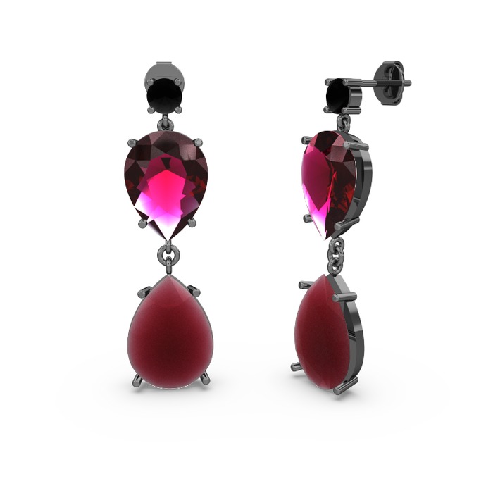 Siyah zirkon, kök yakut ve rodolit garnet 925 ayar siyah rodyum kaplama gümüş küpe
