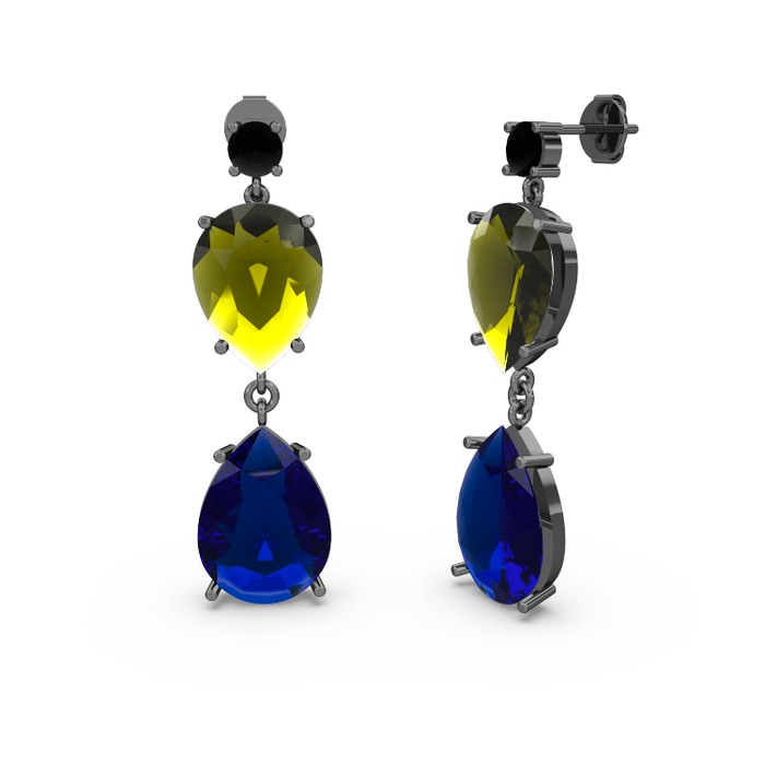 Siyah zirkon, lab safir ve peridot 925 ayar siyah rodyum kaplama gümüş küpe