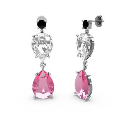 Siyah zirkon, pembe kuvars ve swarovski 18 ayar beyaz altın küpe