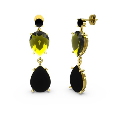 Siyah zirkon ve peridot 14 ayar altın küpe