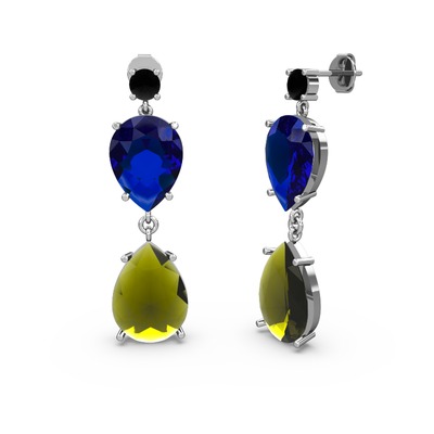 Siyah zirkon, peridot ve lab safir 14 ayar beyaz altın küpe