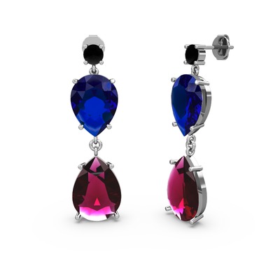 Siyah zirkon, rodolit garnet ve lab safir 925 ayar gümüş küpe