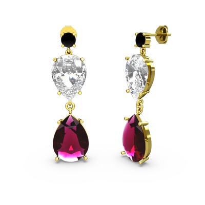 Siyah zirkon, rodolit garnet ve swarovski 14 ayar altın küpe