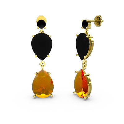 Siyah zirkon ve sitrin 14 ayar altın küpe
