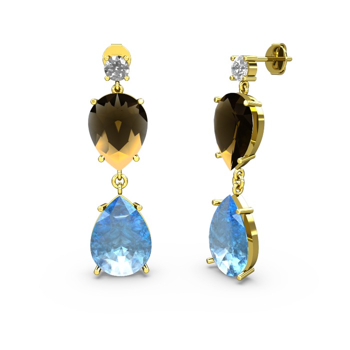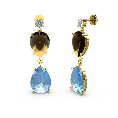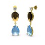 Swarovski, akuamarin ve dumanlı kuvars 925 ayar altın kaplama gümüş küpe