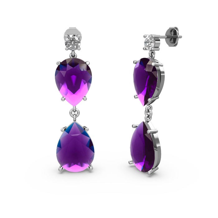 Swarovski ve ametist 14 ayar beyaz altın küpe