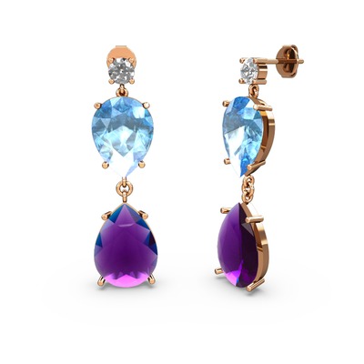 Swarovski, ametist ve akuamarin 8 ayar rose altın küpe