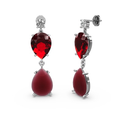 Swarovski, kök yakut ve garnet 8 ayar beyaz altın küpe