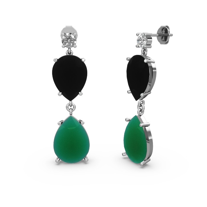 Swarovski, kök zümrüt ve siyah zirkon 18 ayar beyaz altın küpe