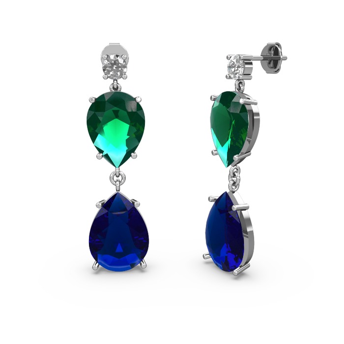 Swarovski, lab safir ve yeşil kuvars 925 ayar gümüş küpe