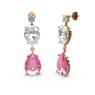 Swarovski, pembe kuvars ve beyaz zirkon 18 ayar rose altın küpe