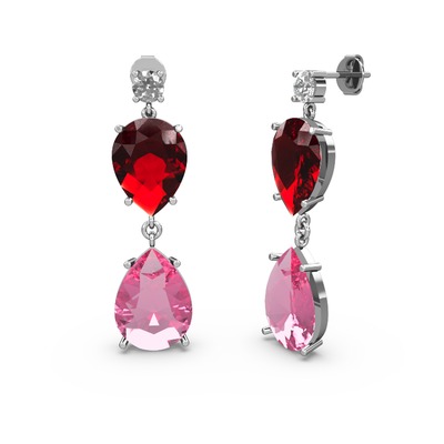 Swarovski, pembe kuvars ve garnet 14 ayar beyaz altın küpe