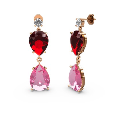 Swarovski, pembe kuvars ve garnet 18 ayar rose altın küpe